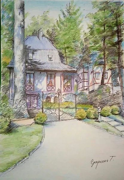 "Дом в соснах".2020 год.Акварельные карандаши,бумага.Не оформлена.Доставка за счет покупателя.Автор Чуприна Татьяна Анатольевна.