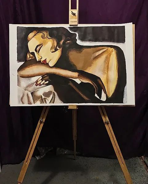 Копия работы польской художницы Тамары Де Лемпицка. Работа выполнена акрилом в стиле арт-деко.