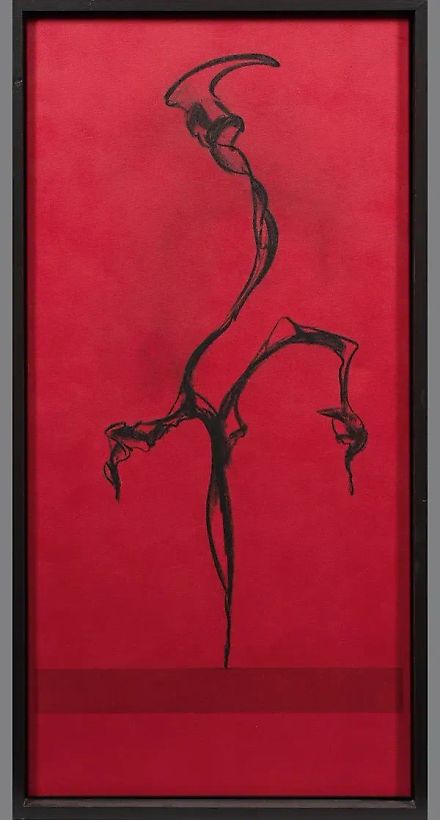 Родился в Будапеште в 1969 году, Шираки активно работает в Бедбурге и Аахене. "В красное [В синее]" - оригинальное название этой абстрактной фигуры жестов на глубоком красном фоне, напоминающим тлеющий дым. Вначале Шираки учился дизайну в Маастрихте, а затем перешел на скульптуру. Середины 2000-х годов он работает в своей студии в Бедбурге, где создает скульптуры в основном для общественных пространств и крупномасштабные картины, а также концепции световых объектов и других инсталляций. Это произведение создано с использованием смешанной техники масла и угля на холсте. На обороте оно подписано и датировано (19)96 годом, а также имеет название. Размеры составляют 120 см x 59,5 см. Оно имеет раму.