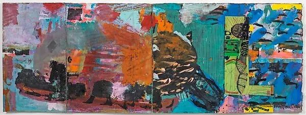 (1950 Цехау-Лезен-2021 Берлин) Безымянное экспрессивное произведение Либудаса, колеблющееся между фигурацией и абстракцией. Либуда учился в Академии графического искусства и книжного искусства в Лейпциге с 1973 года и в 1978/79 годах был студентом-мастером у Бернхарда Хайзига. До 1985 года он работал ассистентом в академии в Лейпциге. В 1999 году он получил премию Фреда Тиля за живопись от Берлинской галереи, а в 2000 году ему была присуждена премия Герхарда-Альтенбурга от музея Линденау в Альтенбурге. Медиа и коллаж на бумаге. Подписано и датировано (19)95 годом. Размеры 30,5 см x 84 см. В раме.