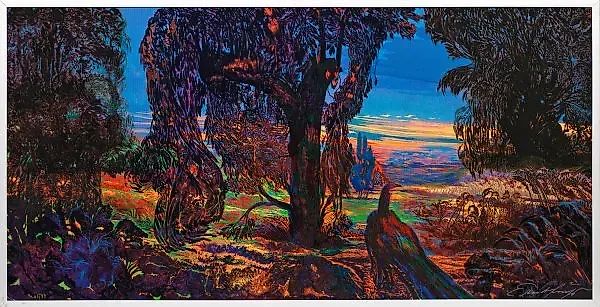 (1930 Вена - 2015 там же) "Павлин". Оригинальное название: Цветной сериграф / масло на твердой древесине, монтированный на фиброплите. Подписан и пронумерован 45/99. Графика большого формата, основанная на монументальной картины, созданной художником в 1986 году. Приблизительно 78 см x 155 см. В раме. Сериграфия (шелкография) цветная на холсте, закрепленном на масоните. Ручная подпись и номер 45/99.