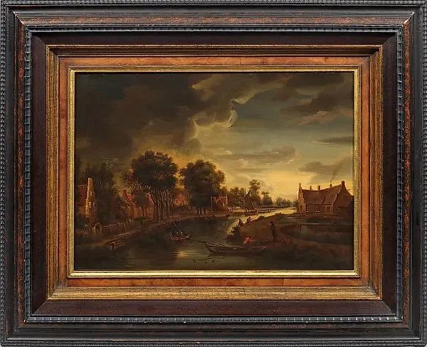 (Активен во второй половине 19 века) Голландский лунный пейзаж. Масло, холст. В раме. Подписан и датирован 1868 годом. Размеры: 45 см х 65 см.