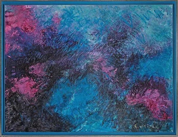 (1951 Гданьск - 2011 Дюссельдорф) Композиция из цикла "Бесконечность". Абстрактная, плоская композиция в ярких розовых, фиолетовых, зеленых и синих тонах. Польский художник изучал живопись в Гданьске с 1970 по 1976 год и в Академии в Кракове. С 1976 по 1982 год он проходил стажировки в Бельгии, Нидерландах, Марокко, Германии и Италии. В 1983/84 году он продолжил свои учебы в Кёльне и Бонне. Войтас остался на Рейне, открывая студии в Кёльне и Дюссельдорфе. С 1988 года он широко выставляется в Германии, а также в Тайбэе, Валенсии, Мадриде и Швейцарии. Смешанная техника на холсте; подписано и названо на обратной стороне; на обороте есть студийная наклейка с адресом художника в Дюссельдорфе. 150 см x 200 см. В раме. Смешанная техника на холсте. Подписано. На этикетке художником указан его адрес в Дюссельдорфе.