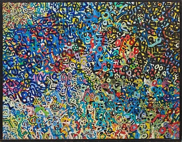 (1939 Нойенбург - 2023 Базель) "Бурлящий шум и интенсивное возбуждение". Оригинальное название "Ранняя работа Алоэ", чьи произведения находятся на стыке абстракции, фигуративности и стрит-арта. Алоэ приехал в Базель в 1962 году и считается одним из самых важных швейцарских художников настоящего времени. В 1967 году он стал членом базельской группы "Фарнсбург", которая протестовала и выставляла свои работы против отклонения их на ежегодных выставках в Кунстхалле. Однако, всего через три года, ему удалось вновь выставиться в Кунстхалле, после чего последовали многочисленные персональные и групповые выставки. Смешанная техника/деревянная панель. С оборотной стороны с подписью, названием, датой (1966 год) и ценой "Fr. 600.-". Размер 49,5 см x 65 см. Студийная или рамочная работа. Смешанные техники и материалы на панели. Подпись, название, дата (1966 год) и цена "Fr. 600.-" на оборотной стороне.