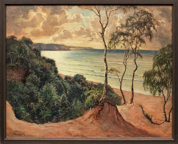 (1886 Шёнау б. Гейдельберг - 1948 Карлсруэ) "Самландкюсте бай Раушен". Оригинальное название Импрессионистски изображённый вечерний пейзаж Балтийского побережья у курорта Раушен (ныне Светлогорск) в Восточной Пруссии. Хемпфинг, выпускник Карлсруэской академии, является одним из самых значимых южногерманских пленэрных художников своего поколения. Он представлял свои картины в 1911-1914 годах, в частности, во Всестеклянном дворце в Мюнхене, в Художественном доме в Вене и на Большой выставке искусств в Берлине. Масло/твердая фанера. Подпись внизу слева; на обороте название. 80 см × 100 см. Рама. Масло на фанере. Подпись. Название на обороте.